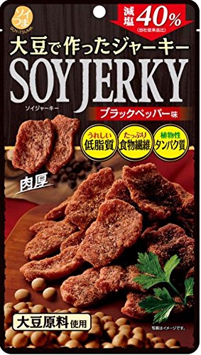 原材料:還元水飴、粒状大豆たん白(脱脂大豆、粉末状大豆たん白、植物油脂)、しょうゆ、乳糖、ビーフジャーキー風味調味料、大豆食物繊維、食塩、オブラートパウダー、ブラックペッパー、酵母エキス、ガーリックパウダー、ジンジャーパウダーソルビトール、グリセリン、調味料(アミノ酸等)、くん液、香料(小麦・卵・乳由来)、乳化剤、酸味料、カラメル色素