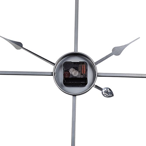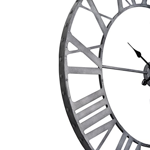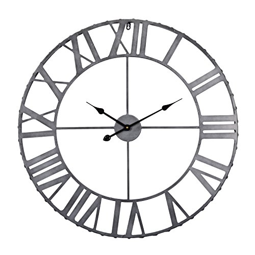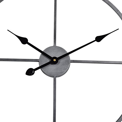 -. Feature : Great décor accent at 32" this beautiful wall clock will make an impact / Hand finished brushed pewter on sturdy iron metal that goes well with rustic, industrial, and traditional decors / Powered by 1 AA battery (not included) / Add style and be timely with this clock in your living room, dining area, foyer or bedroom