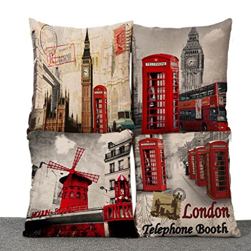 London Bus Telephone Throw Pillow Case Vintage Cushion Cover C15