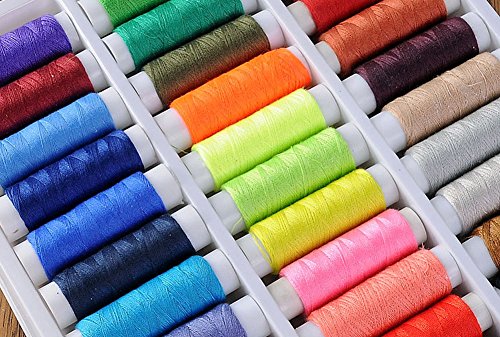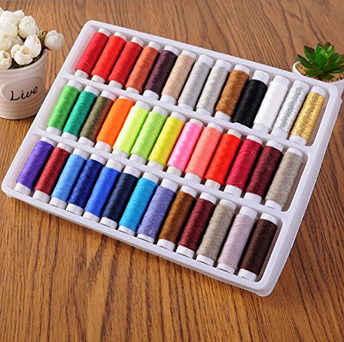 -. Feature : Material: Polyester. / 39 Colors of Polyester thread. / 200 yards per roll. / 39 colors in random, the colors may be duplicated. / 39 Colors Threads Set for Professional, Home, Travel, Gifts, Art School, Tailor Shop.