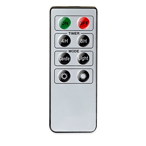 1. Please pull out the plastic insulation sheet in the bottom battery compartment of each candle before use. 2. Keep them out of direct sunlight, away from heat sources and out of extreme temperatures or your candles may soften or melt. 3. Batteries exposed to prolonged heat will shorten its battery life. 4. If you switch your candles on and off manually, you can expect to see longer battery life. Use of the timer mode will shorten battery life slightly, as they use battery to stay active, enabling to receive signal even when the candles are turned off with remote. 5. These candles are made of real wax and flammable. Do not attempt to light these candles!!!