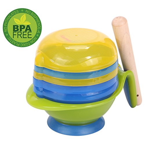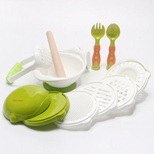 -. Title : Baby Food Mill Grinding Bowl Grinder Processor Multifunction Mash Prep Serving DIY Homemade 8 in 1 Set by Kolamom