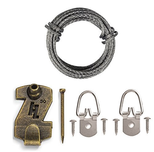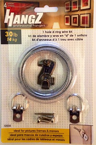 HangZ 12030 1-Hole D-Ring Wire Picture Hanging Kit, 30lb