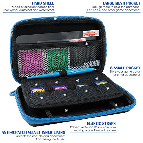 -. Feature : 4 IN 1 KIT: This kit includes 1 zipper carrying case, 1 silicone protective cover, 1 stylus and 2 PET screen protectors for both top and bottom screens, which meet all the needs of daily protection for the 2DS. / DURABLE EVA MATERIAL: EVA material makes appearance of the case with water-resistance ability. Soft microfiber interior lining keeps your 2DS system and accessories sung while preventing scratches. / LARGE CAPACITY CASE: This case perfectly fits for New Nintendo 2DS XL/LL console. It can also carry other accessories such as game card, make it more convenient to bring for travel or outdoor activities. / SILICONE PROTECTIVE COVER: Made of durable silicone material, this protective cover offers excellent protection for the console. It allows access to all ports, buttons, and functions. / ANTI-SCRATCH PET FILM: Crafted from high quality PET, these films have the advantages of anti-fingerP.R.Int, anti-oil, anti-scratches, etc, providing a good protection for the screens.
