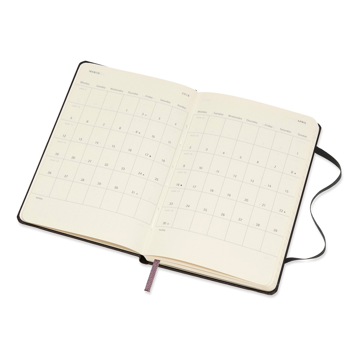 The monthly schedule of the top is a two-month block type with a spread.