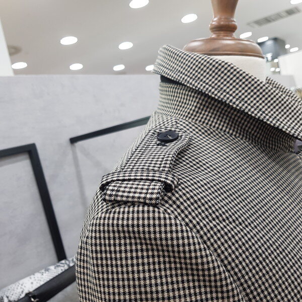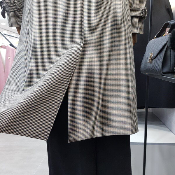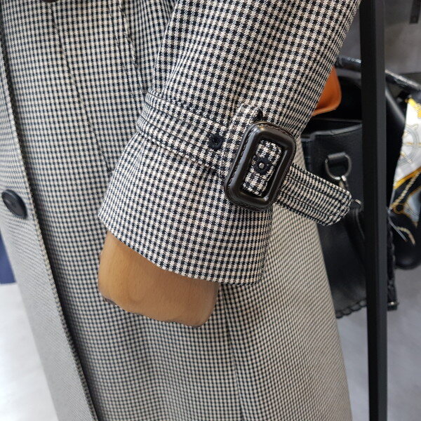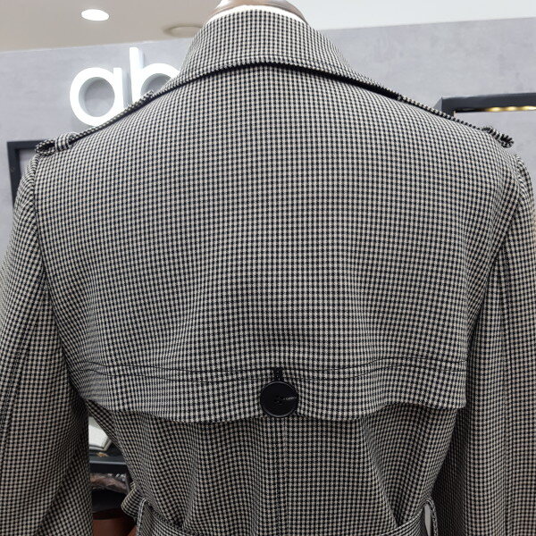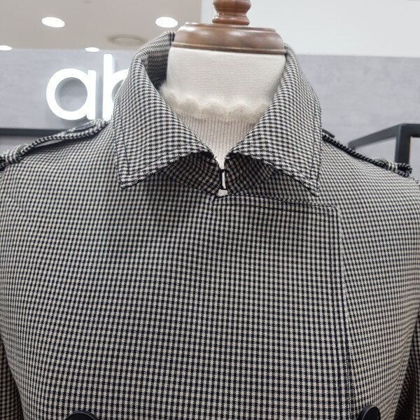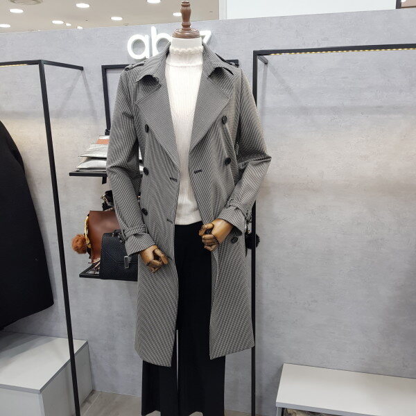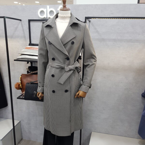 더블버튼 디테일로 고급스러운잔 체크 트렌치코트 입니다신축성이 좋아 편안한 착용감으로멋스러워요^^