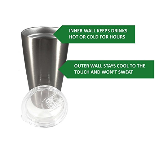 No more cold coffee by the time you get to the office or warm water on a hot day at the beach! This tumbler features a vacuum-insulated double-wall design to keep drinks hot or cold for hours. Constructed of high-quality 18/10 stainless steel, it's durable and safe. The customized lid is stylish yet rugged and designed with an easy-to-use slide latch to prevent spills. Plus it's dishwasher safe. Perfect for outdoor, home or vehicle, this set includes two 20 fl. oz. (0.6 L) tumblers with lids.Feature