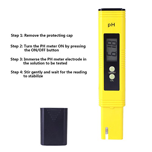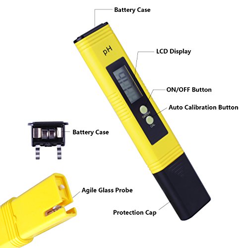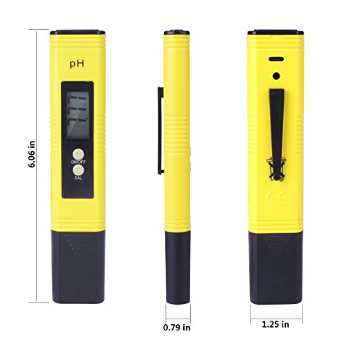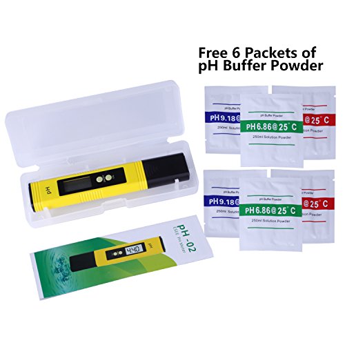 Digital PH Meter Full Kit, 6 pH Buffer Powder, Pen Type PH Tester with Auto Calibration Button,Compact Size,Large LCD Screen,Tests pH Balance in Water, Aquarium, Pool, Food