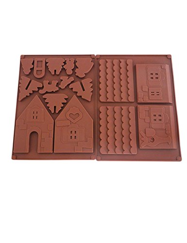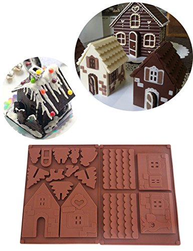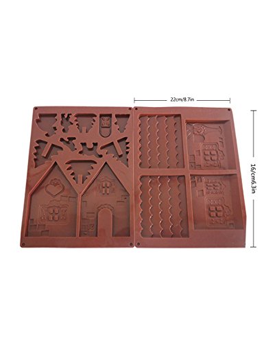 Jinhua 2 Pieces Non-Stick Christmas Gingerbread House Chocolate House Silicone Mold Christmas Tree Cake Silicon Mould DIY Biscuits Baking Tools for Xmas Decorations