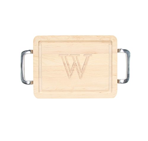 BigWood Boards 200-SPOL-W Thick Bar/Cheese Board with Square Polished Aluminum Handle, 9-Inch by 12-Inch by 3/4-Inch, Monogrammed "W", Maple