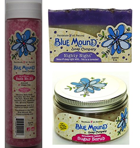 Blue Mound Soap Value Gift Set (contains Mineral Bath No. 7 bath salts, Nighty Night bath soap, and Strawberry Lemon Sugar Scrub)
