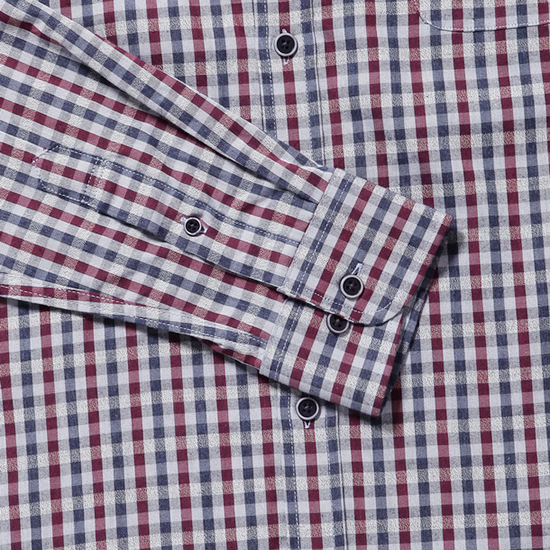 - 캐주얼한 컬러 깅엄 체크 패턴 텍스쳐의 남성 셔츠.