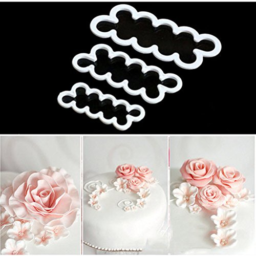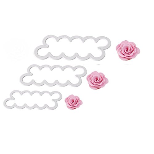 WJSYSHOP 3PCS 3D Rose Flower Petal Cake Fondant Cookie Cutter DIY Decorating Mould
