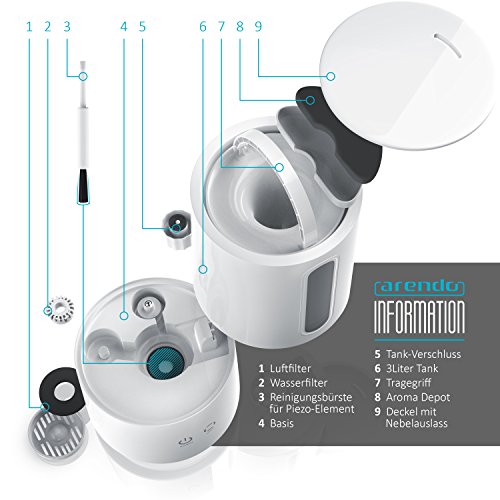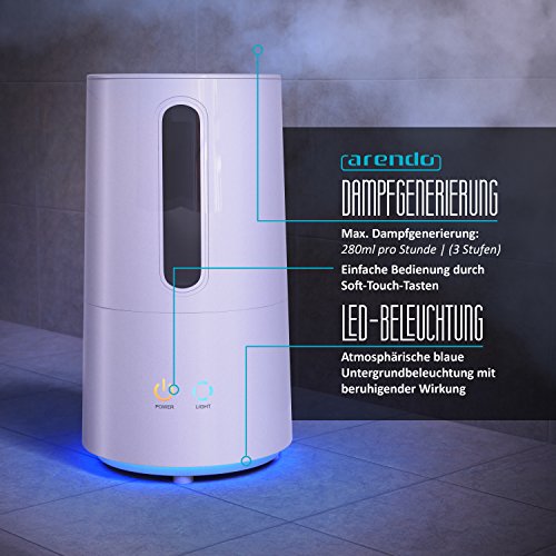 Arendo - LED Design Luftbefeuchter / Raumbefeuchter | Ultraschall Diffusor / Humidifier | Zerstauber | 3l Wasserbehalter | zur Verbesserung der Gesundheit | gerauscharm | Soft-Touc