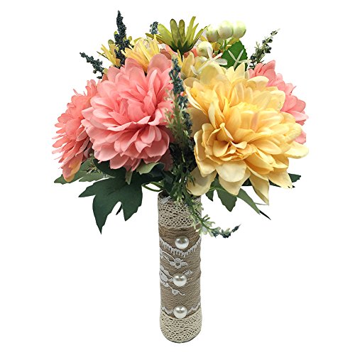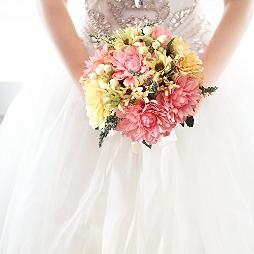 YAMUDA Bridal Bridesmaid Flower Girls Wedding Bouquet Flowers Hydrangeas Handmade Real-Touch Silk Artificial Flowers Rose Wedding Decoration (yellow/pink daisy)