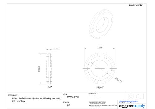SKF KM 1 Standard Locknut, Right Hand, Not Self-Locking, Steel, Metric, M12 x 1mm Thread