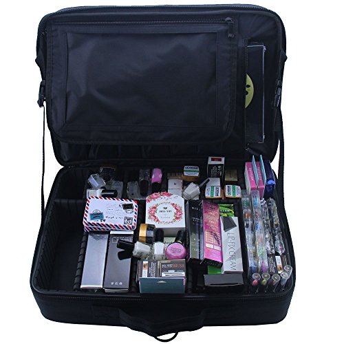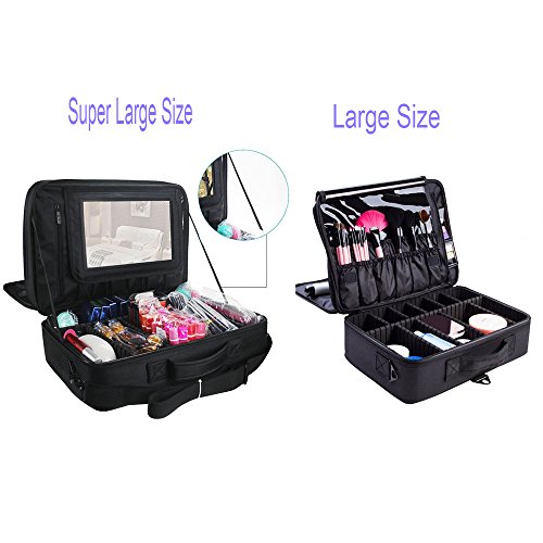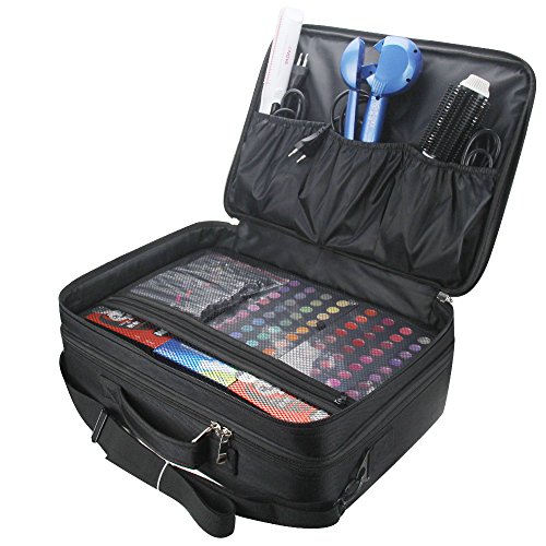 Roomy And Multi Compartment : travelmall professional makeup train case Has 3 Specific layer for curling irons,6 Elastic for hair curler hair straightener , makeup brush etc . zippered mesh bag . 12 Elastic pocket with a plastic cover give all your brushes a safe "home". multi movable Partition give your freendom to arrange the space.