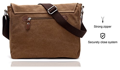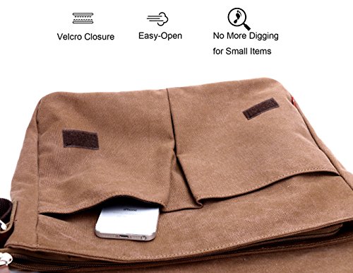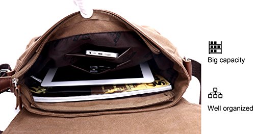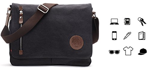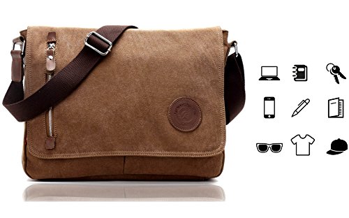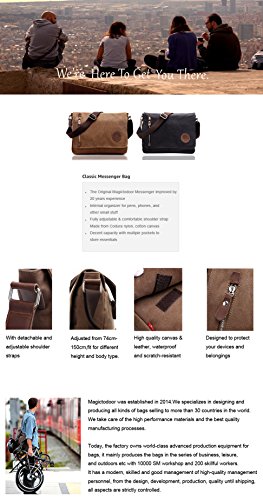 -. Brand : Magictodoor -. Department : unisex-adult (lage only) -. Feature : Size: 13.5"(L)*3.1"(W)*10.8"(H); Weight: 1.45 lb; fit for 13 inches laptop or A4 documents. / Various pockets: Exterior: 1 zipper pocket and 2 open pockets in front; Interior: 1 main compartment, 2 drop case for cards and phones. / Wear-resistant canvas, 100% imported leather / Detachable and adjustable shoulder straps / Perfect bag for working, short traveling, school and daily using. -. Model : 8501 -. ProductGroup : Apparel -. ProductTypeName : LAGE -. Title : Canvas Satchel Messenger Bag By Magictodoor 13.5" Laptop Bag