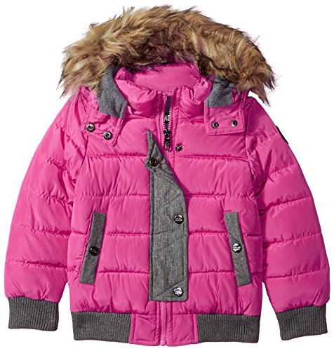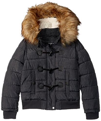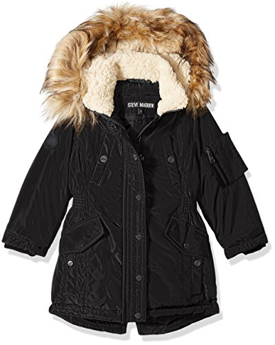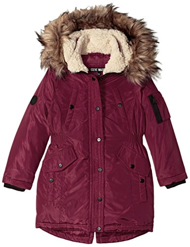 Attached hood is lined and faux fur trimmed