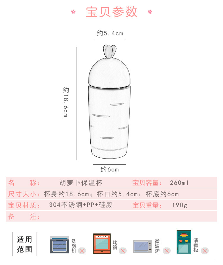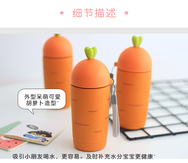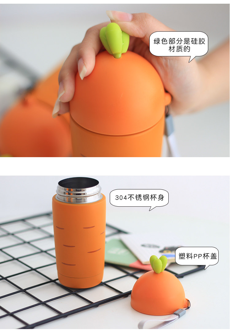 韩版可爱胡萝卜保温杯创意潮流男女学生随手杯便携儿童迷你水杯子