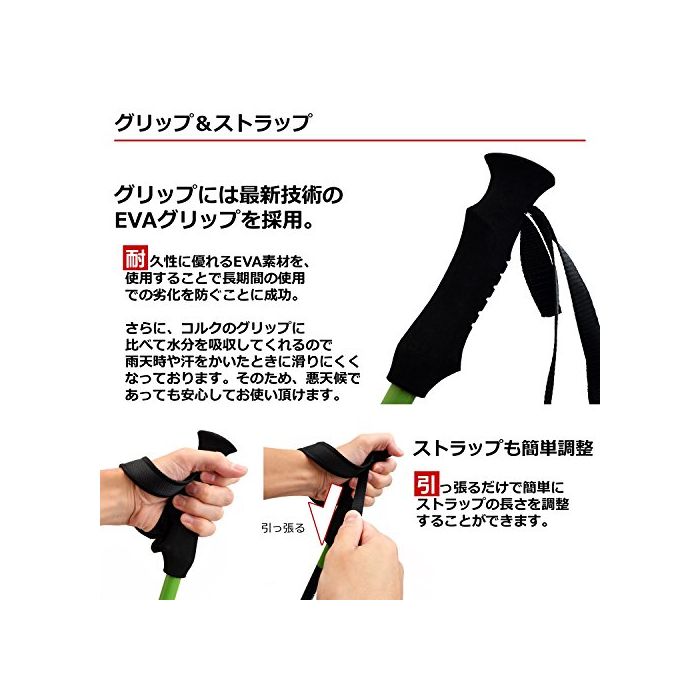 원본상품명: WILDER トレッキングポル 156g(1本) 65cm~135cm ネジ式ロック カポン製 グリン