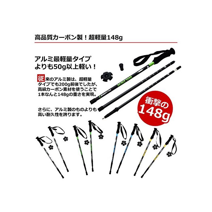 WILDER 초경량 148g 카본제 트래킹 폴 트래킹 스틱 2개 세트 등산장 스톡 anti쇼크 기능 운반에 편리한 carrying 케이스 첨부 와