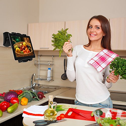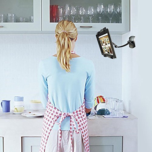 Description:? Seamlessly integrate your tablet into your home with our Kitchen Mount Stand. This sturdy and stylish aluminum stand can be mounted on a wall, under the kitchen cabinet or used as a countertop stand to conveniently access apps or watch videos. This mount features a secure adjustable holder designed for 7-11-inch screen tablets , so it can easily hold any current iPad model, including iPad Air and iPad Mini. It can also hold other tablet lines such as the Kindle Fire, Nexus, Galaxy Tab and Note tablets. The Mount can be also placed on a table or countertop for portable use. ?