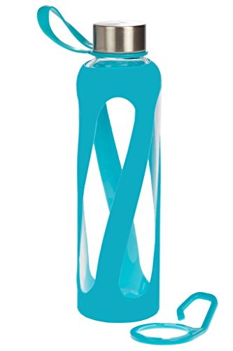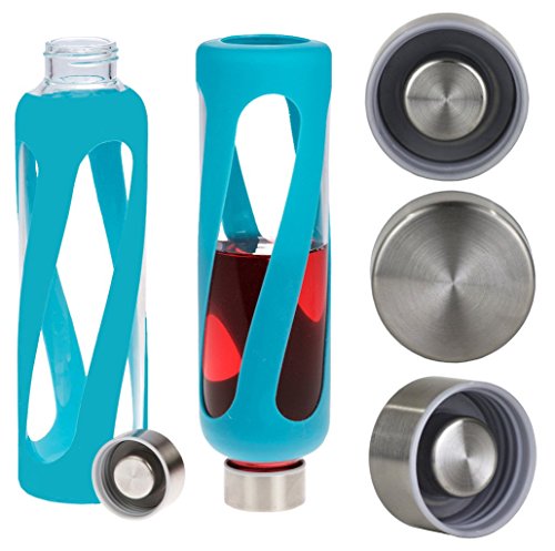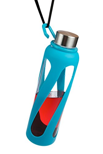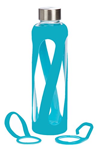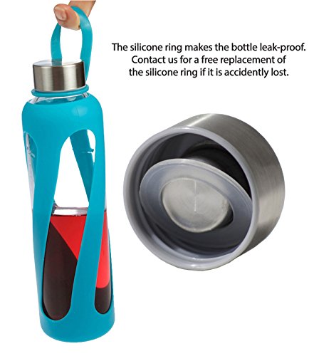 1, 2, 3, 4- PACKS - 20 oz Leak Proof, Reusable Pure Borosilicate Tempered Glass Water Bottle, Non-Slip Silicone Sleeve, 2 Attachments: Loop and Hook, Free of BPA, BPS, BPF, PVC, Phthalates