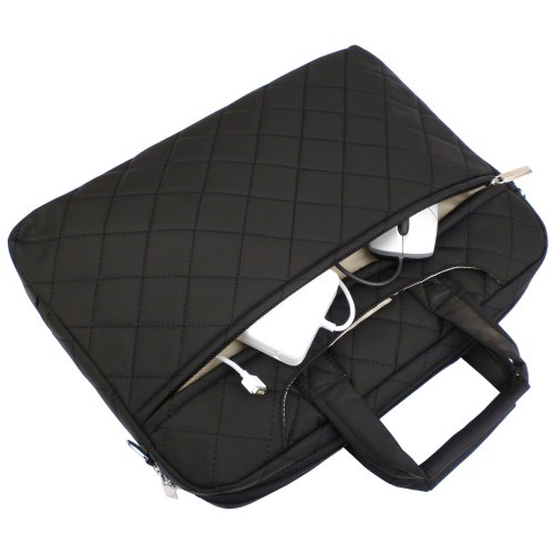 - Title : Diamond 14-Inch Quilted Pattern Laptop Notebook Carry Case Messenger Shoulder Bag Briefcase with Hidden Handle - Black