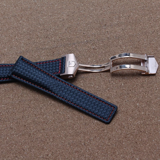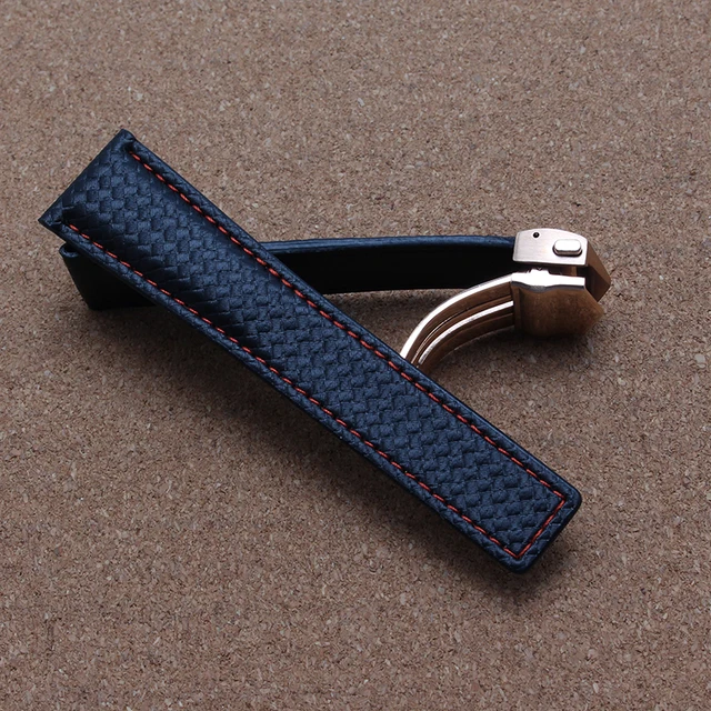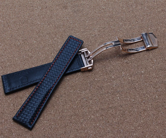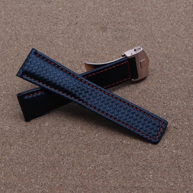 | [해외] 새로운 2016 탄소 섬유 손목 시계 정품 가죽 특수 바닥 레드 스티치 20 미리메터 22 미리메터 블랙 시계 액세서리 손목 |