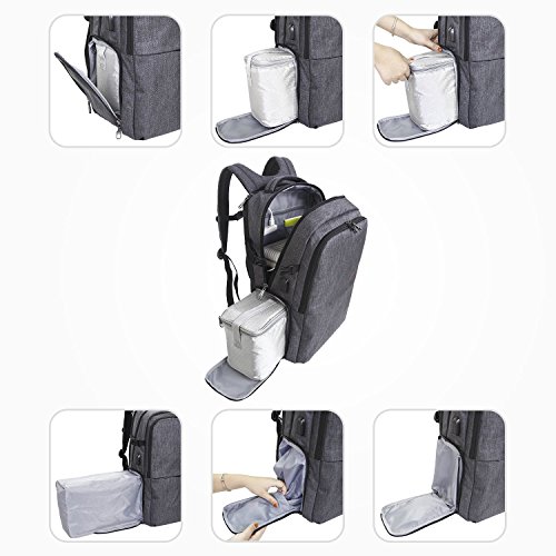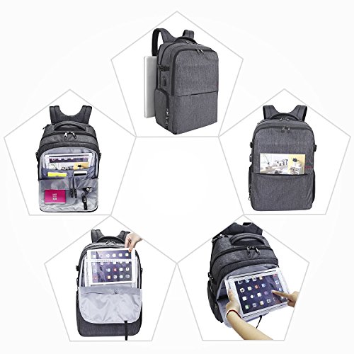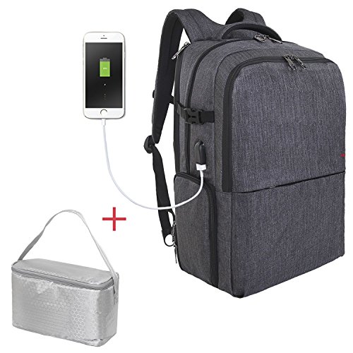 Studio : SLOTRA Publisher : SLOTRA Product Description This backpack is perfect for 2 days of travel, picnic, daypack with lunch bag. It will meet your need for a weekend or short business trips. You're worth it! features: Material: water-resistant fabric PC Pocket Zippers: waterproof zipper External dimensions (L * W * H): 52x33x19cm Laptop pocket size: 18.9 * 12.6 * 7 inches Net weight: 1.4kg Volume: 45 liters Multipurpose: business travel backpack, lunch bag, waterproof bag, laptop backpack Package Includes: 1 x black gray backpack Service: Amazon and SLOTRA offer fast delivery and considerable service. We take responsibility for quality. Advantages: 1. Backpack with padded laptop compartment for 17 ", waterproof zips, independent space for insulated picnic bag 2. Backpack with external USB port and a detachable USB charging cable, provides convenient charging. The internal charging cable can be replaced according to your needs 3. Organized storage bag. main compartment for clothing and plenty of pocket for Ipad, books, key rings, cell phone, wallet, water bottle and umbrella, toiletries. You can bring the picnic bag according to your needs 4. Waterproof cover. Protect your materials, especially electronics and allow you to make a good trip. 5. Multi-purpose use: padded adjustable shoulder strap for comfortable wear, carry handle for hand, luggage belt on the back for attaching the bag to the suitcase.