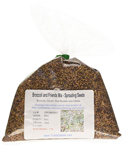 Sprouting Seeds Broccoli and Friends 1 Pound Broccoli Seed, Crimson Clover Seed, Red Radish Seed, Alfalfa Seed