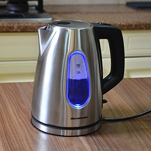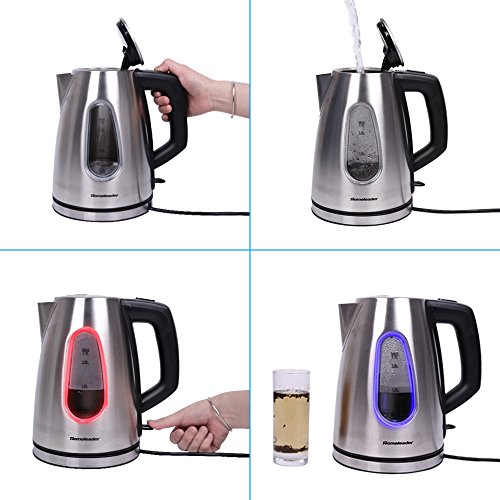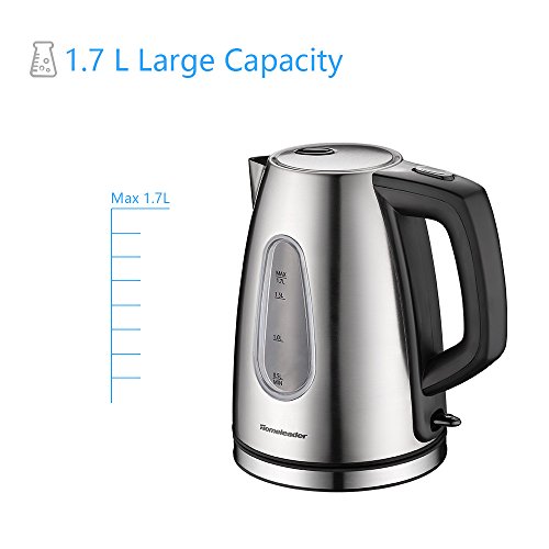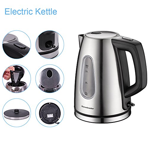 1.7 LITER CAPACITY: The stainless steel Kettle can heat water up to 8 cups (1.7L) at one time. 1000W rated power that boils water faster and uses less energy than stovetop kettles. Fast and convenient to use, save your time.