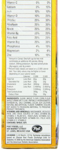 -. Feature : Pack of four, 11.5-ounce, total of 46-ounce / Waffle-shaped, sweetened, multi-grain cereal / Provides 10 essential vitamins and minerals / Excellent source of six B vitamins / No high fructose corn syrup and no artificial color