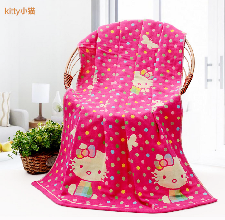 韩版卡通 hello kitty纯棉浴巾 成人儿童用柔软毛巾纱布纯棉浴巾