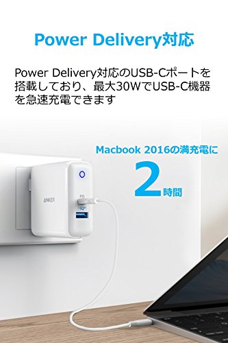 Anker独自技術PowerIQ 2.0によりほぼ全ての標準的なUSB機器にフルスピード充電が可能です。また、USB-C機器はPower Delivery対応USBポートから30Wのスピードで充電ができます。