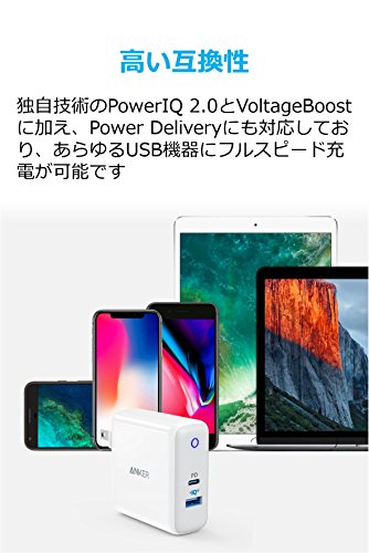 充電器をいくつも持ち運ぶ必要はもうありません。Anker独自技術のPowerIQ 2.0対応USBポートとUSB-C Power Delivery対応USBポートにより、この充電器ひとつでお手持ちの機器をほぼ全て充電することができます。