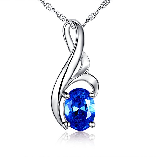 Women Pendant Necklaces Metal Type: Sterling Silver Stone Type: Simulated Blue Sapphire Stone Shape: Oval Cut Product Weight: 0.9 Grams Main Stone Carat:0.75Ct(7mm 5mm) x 1pc Side Stone: Multiple CZ stone 18 inches chain and gift box included