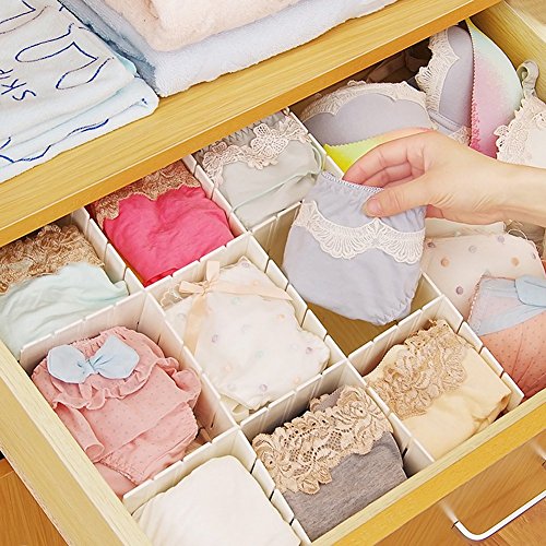 -. Feature : Material: ABS plastic / Width: approx.5cm; Thickness: approx. 2mm / Suitable for desk drawer, closet drawer, dresser, trunk space, cabinet, etc / It not only can save space and your time to find things(underwear, socks ,tie, etc), but also can keep your drawer clean and tidy / Quantity: 6pcs
