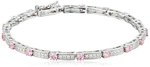 -. Title : Rhodium and Rose Gold Plated Sterling Silver Round Pink Cubic Zirconia 3mm and White Cubic Zirconia Bracelet, 7.25"