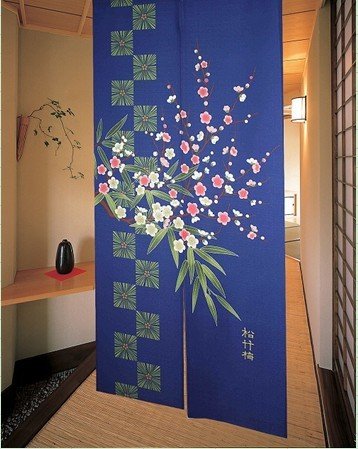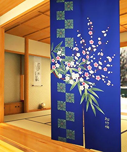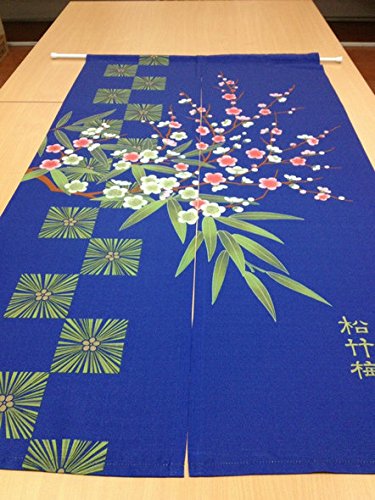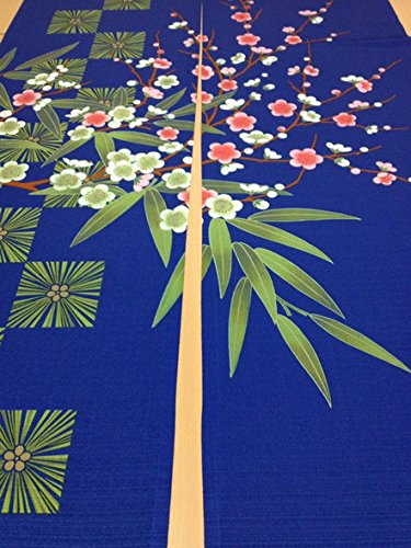 Retro Traditional Blue Background Chinese Pine Tree Bamboo Plum Flower Pattern Door Curtain Children Room Curtain 85cm By 150cm by Lifeast