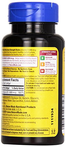 Nature made biotin 5000 Mcg liquid softgels for healthy hair, skin and nails. Biotin is an important nutrient for healthy hair, skin and nails.