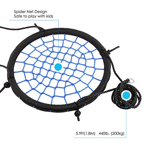 Heavy Duty Structure: Made from premium ropes and stainless steel frame, our web swing is super durable. It can bear 440lbs, fits for 4 children or 2 adults.