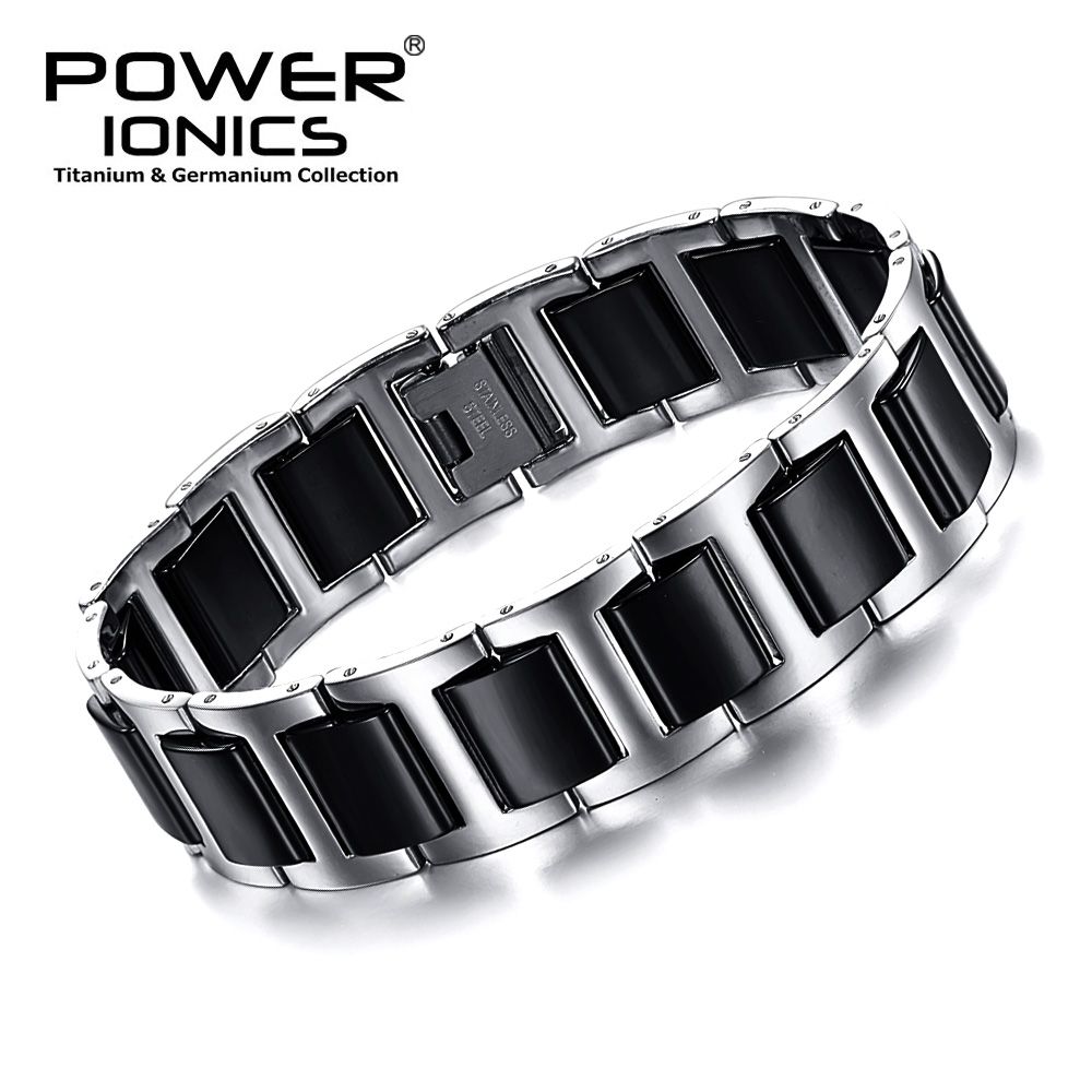 Package: 1 x Power Ionics Silver Black Ceramic Wide Bracelet as picture