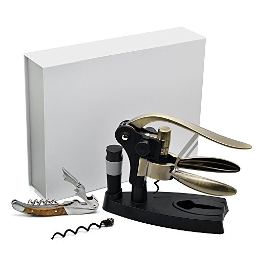 Studio : BAIYI Kitchenware Publisher : BAIYI Kitchenware Product Description Which Wine Opener has Won the Hearts of Wine Lovers Everywhere? The Most Reliable and Durable Lever Corkscrew on the Market.The BAIYI Screwpull Lever Corkscrew is the NEWEST approach to removing any wine corks, opens up your wine bottles in just seconds. Features: Easily removes stubborn or fragile corks. Material: Zinc alloy material with plating, durable and attractive. Method of use: 1. Remove the foil with cutter. 2. Swing lever to full open position and put the opener over the bottle until it stops in the exact position. 3. Grip the bottle neck with the grip handles, slowly swing lever to close position. 4. Slowly swing the lever back to open position, then take the cork out of the bottle. Package Listing: 1* Rabbit opener 1* Stand 1* Spare screw 1* Vacuum pump 1* Foil cutter 1* Waiter's corkscrew 1* User manual 1* White fashionable box Why Choose Our Corkscrew? Easy for use Durable and effortless NEW bronze-plated finish Bonus a rosewood waiter's corkscrew Luxury gift box presentation 100% lifetime satisfaction guarantee