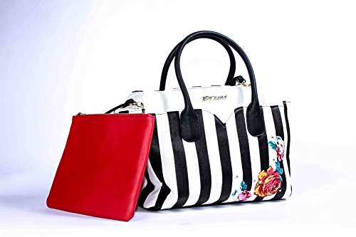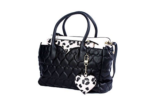 Two bags are better than one Betsey Johnson Pouch Dip Bag has plenty of space for everything and plenty of style for anything. Exterior Features Front heart shaped slip pocket with zippered Wristlet pouch that ensures stylish flair, Zip top satchel ,Double Handles 5 Drop, Removable shoulder strap 23" Drop, Fully Lined printed Interior with Wall zipper pocket and 2 Slip Pockets. This carryall offers versatility for an everyday wear and will keep you organized with separate zippered pouch to carry the essentials.Feature