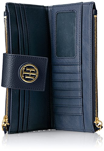Tommy Hilfiger Wallet for Women TH Leather Double Zip Wristlet, Tommy Navy