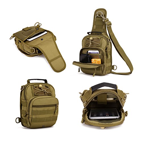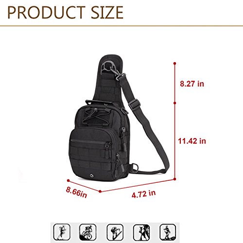 Department: Unisex Structure 1.Exterior: Two zipped front pockets, Back Snap Fastener Pocket 2.Interior: One Magic pocket, Four open pockets 3.Outer Material: High strength abrasion nylon and waterproof Inner Material: Waterproof Silky Cotton 4.Back: Thicken Breathablec Sponge 5.Hardware: Metal Lengthen the Rope Pull Head 6. It has the velcro area that perfect to add the kettle set, accessory bag, vice package according to what you need Measurements 1.Dimensions: 8.7"W x 11.4"H x 4.7"D 2.Waist Strap Drop (From waist to the strap): 33.1"-58.7" Waist Strap Width: 1.6" 3.Shoulder Strap Drop: 15.9"-30.3" Shoulder Strap Width: 2.6" 4.Pocket size: (Zipped front pocket): 13.6"H x 7.8"W 5.Weight: 1.2lb Function 1.Except for morder casual and fashion style, it's also a practical bag. 2. It's a Molle system bag, you can use it flexibly 3. It's a good choice for your travel or outdoor activities or daily use