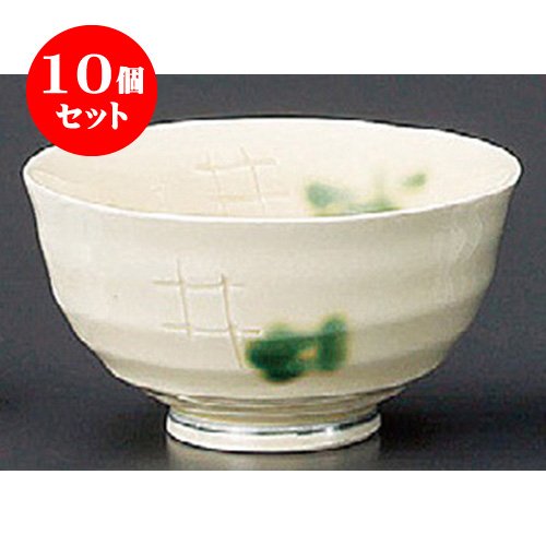 원본상품명: 10個セット 飯碗(磁器) ?釉織部流し反茶碗 [113 x 60mm] 和食器 料亭 旅館 ?食店 業務用