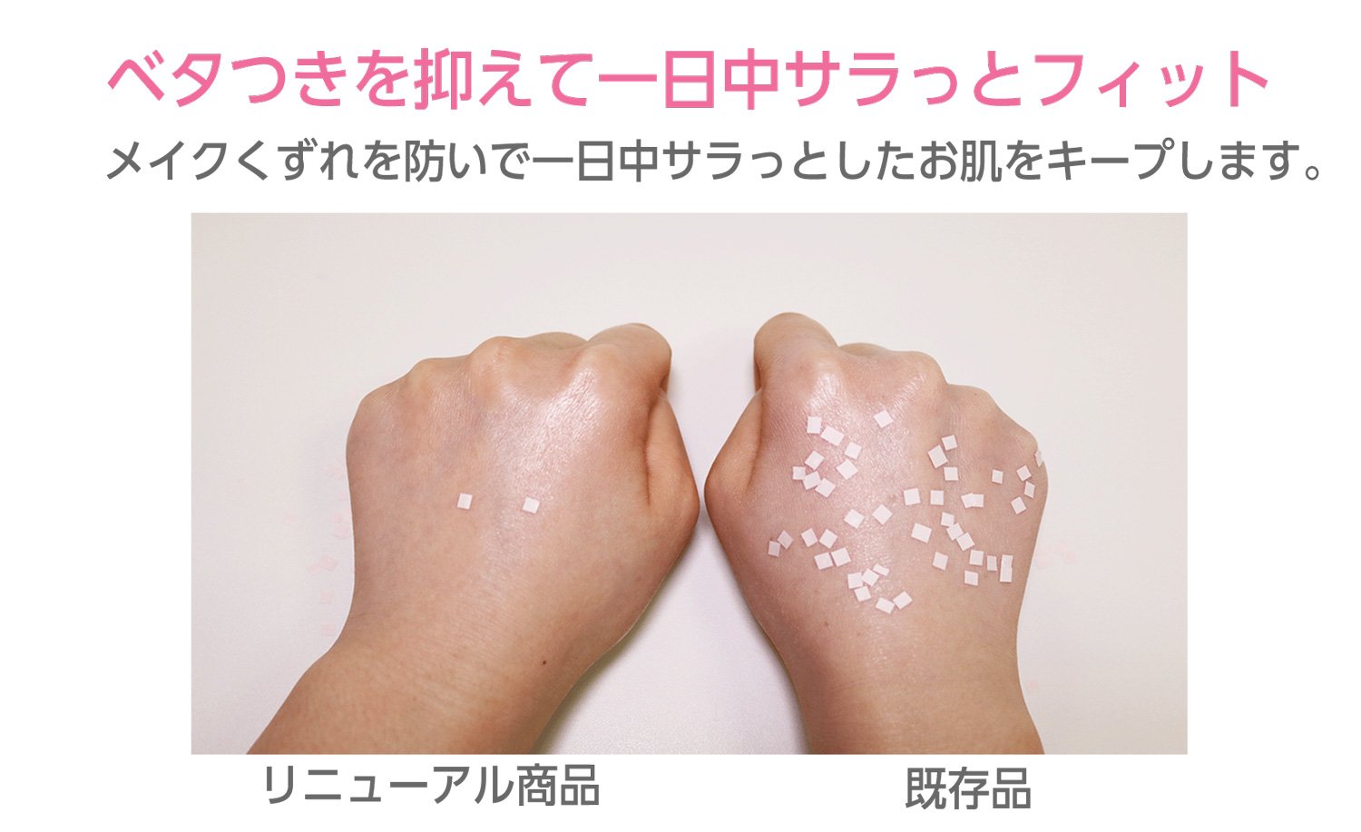 A texture that stretches firmly in a small amount suppresses the stickiness and the stiffness, it prevents make-up collapse and keeps the skin which was soaked all day all day.